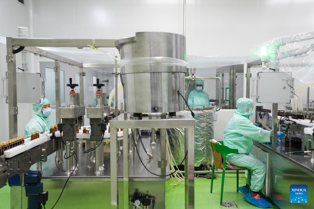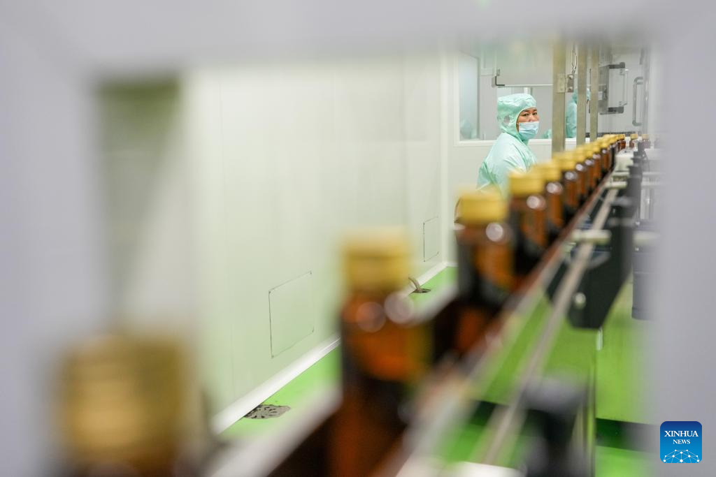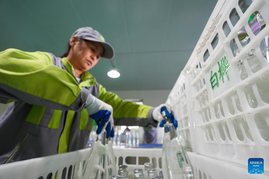 A staff member works at a birch sap processing company in Yichun, northeast China's Heilongjiang Province, Sept. 10, 2025. (Xinhua/Wang Jianwei)