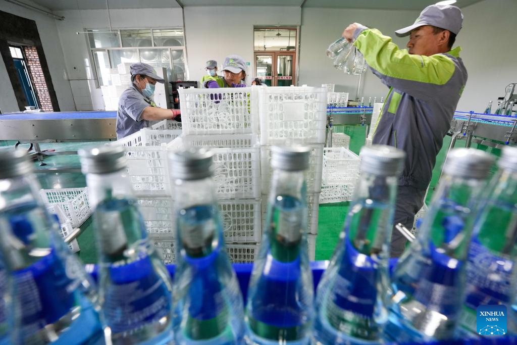 Staff members work at a birch sap processing company in Yichun, northeast China's Heilongjiang Province, Sept. 10, 2025. (Xinhua/Wang Jianwei)