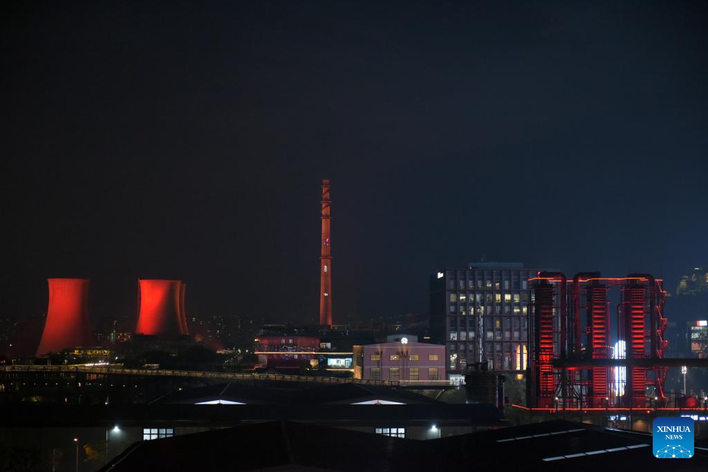 This photo taken on Sept. 11, 2025 shows a night view of Shougang Park in Beijing, capital of China. Against the backdrop of repurposed blast furnaces and industrial relics of Shougang Park in western Beijing, the 2025 China International Fair for Trade in Services (CIFTIS) opened on Wednesday, striking a tone of open markets and digital innovation. (Xinhua/Zhang Xinjing)