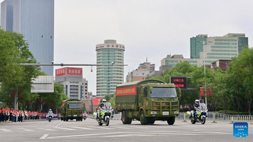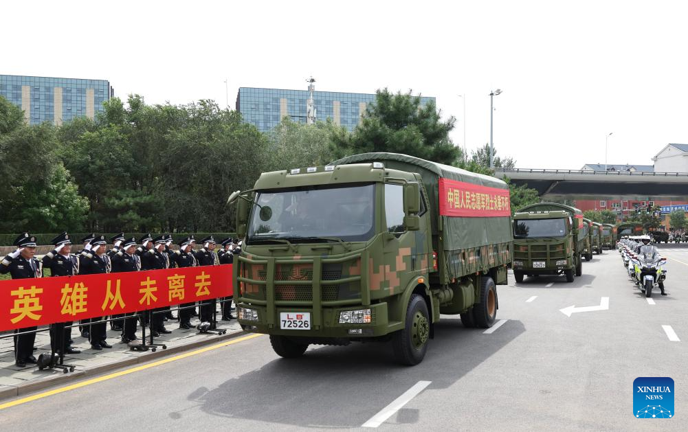 A motorcade delivering coffins containing the remains of the Chinese People's Volunteers (CPV) martyrs is seen in Shenyang, northeast China's Liaoning Province, Sept. 12, 2025. The remains of 30 Chinese People's Volunteers (CPV) soldiers who lost their lives during the War to Resist U.S. Aggression and Aid Korea (1950-1953) were returned to China on Friday from the Republic of Korea (ROK). (Xinhua/Yang Qing)