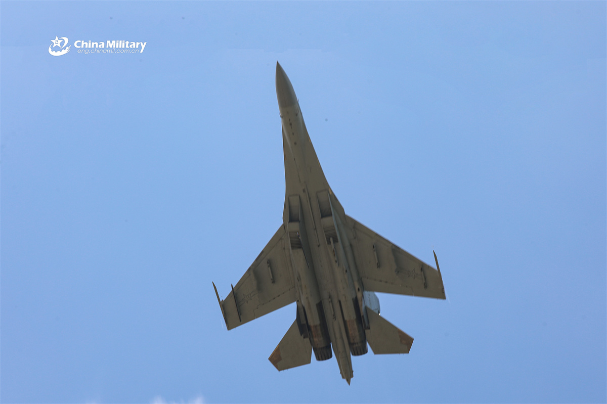 A J-16 fighter jet attached to unit with the air force under the Chinese PLA Eastern Theater Command flies towards the designated airspace during a flight training exercise. (eng.chinamil.com.cn/Photo by Li Kai)