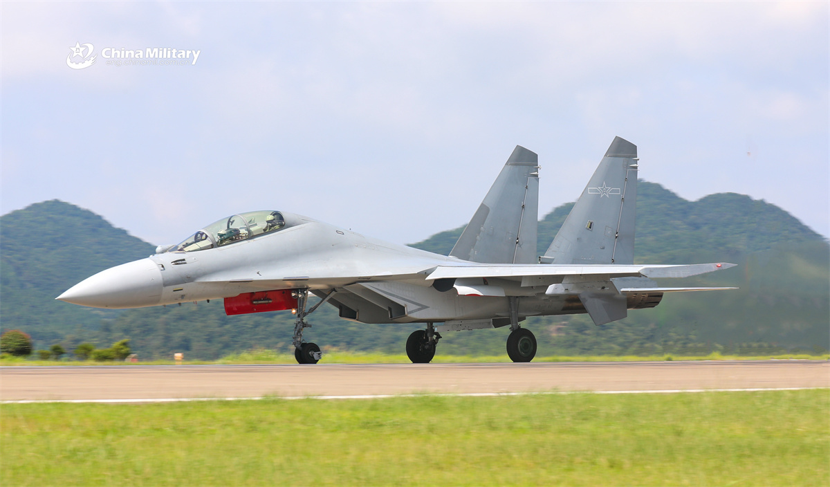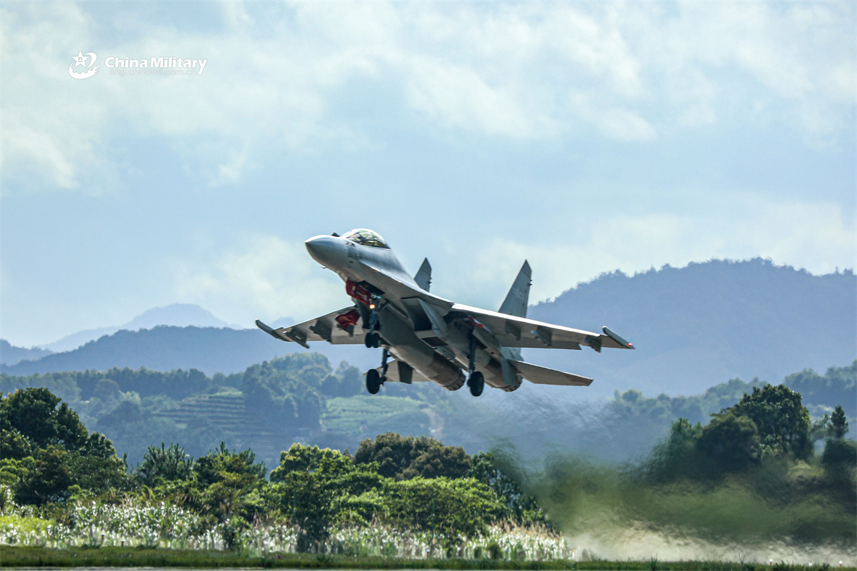 A J-16 fighter jet attached to unit with the air force under the Chinese PLA Eastern Theater Command takes off during a flight training exercise. (eng.chinamil.com.cn/Photo by Li Kai)
