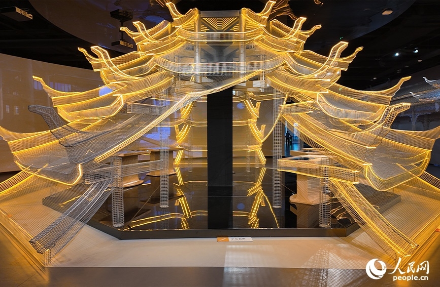 Traditional wooden architecture craftsmanship of the Dong ethnic group is featured at an intangible cultural heritage park in Huaihua, central China's Hunan Province. (People's Daily Online/Huang Zhuo)