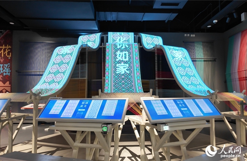 Dong brocade exhibits are shown at an intangible cultural heritage park in Huaihua, central China's Hunan Province. (People's Daily Online/Huang Zhuo)