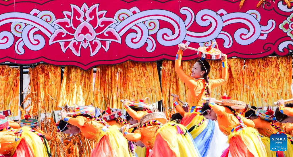 Performers dance during the opening ceremony of a culture and arts festival themed on the ancient Tea Horse Road in Qamdo, southwest China's Xizang Autonomous Region, Sept. 15, 2025. Qamdo used to be a key stop along the ancient Tea Horse Road, a trade route which dates back to the Tang Dynasty (618-907) and spans multiple regions. (Xinhua/Dang Li)