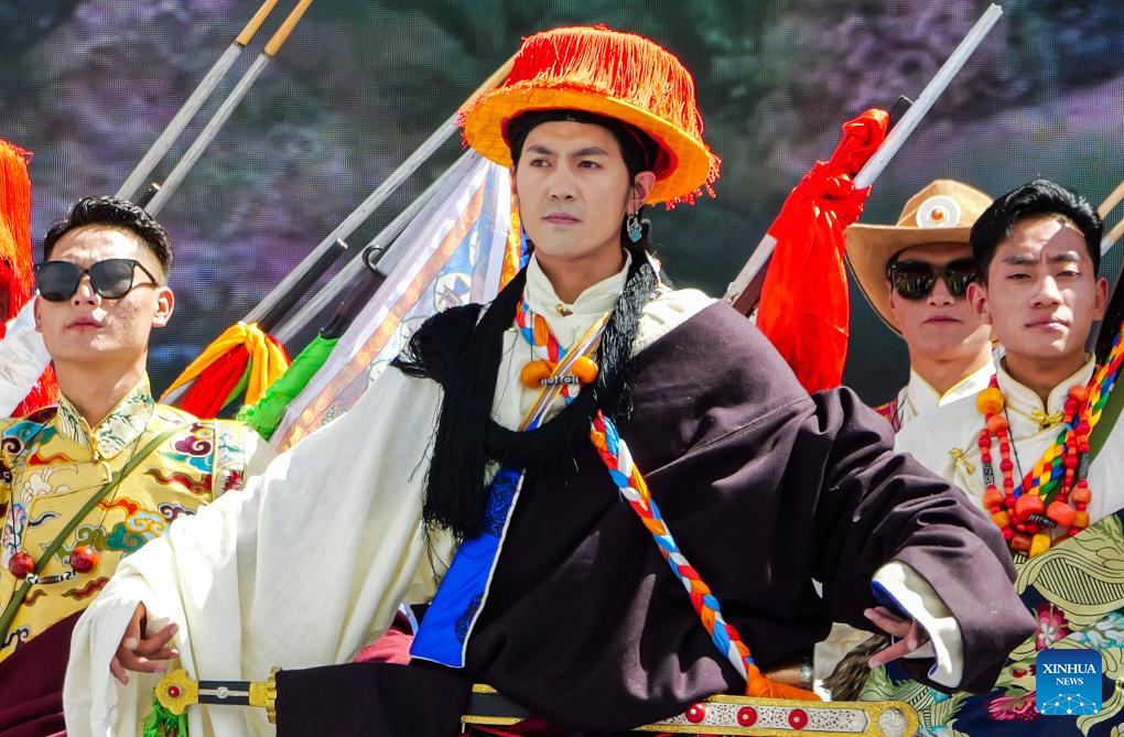 Models present traditional costumes during the opening ceremony of a culture and arts festival themed on the ancient Tea Horse Road in Qamdo, southwest China's Xizang Autonomous Region, Sept. 15, 2025. Qamdo used to be a key stop along the ancient Tea Horse Road, a trade route which dates back to the Tang Dynasty (618-907) and spans multiple regions. (Xinhua/Kelsang Namgyai)