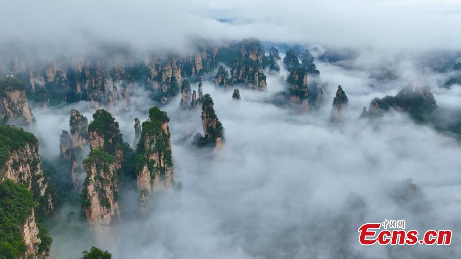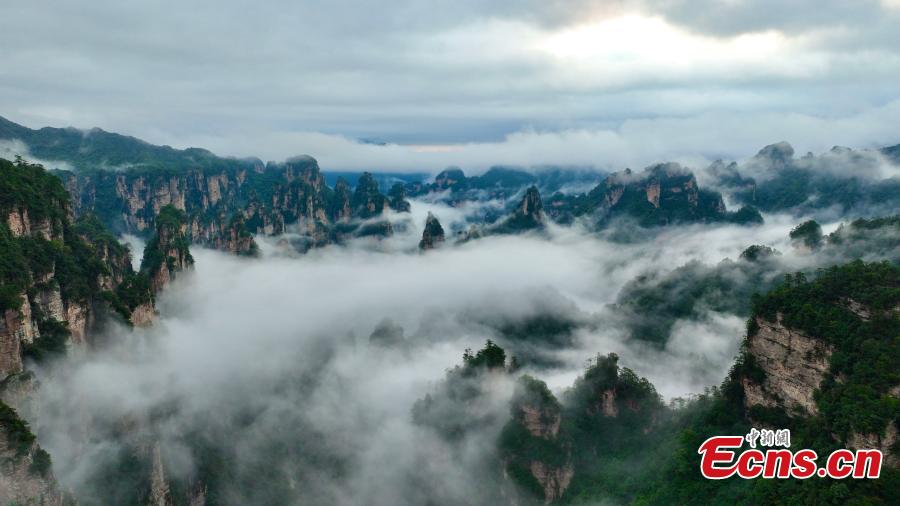 Photo taken on Sept. 15, 2025 shows the sea of clouds at the Wulingyuan Scenic Area in Zhangjiajie, central China's Hunan Province. (Photo: China News Service/Han Suyuan)