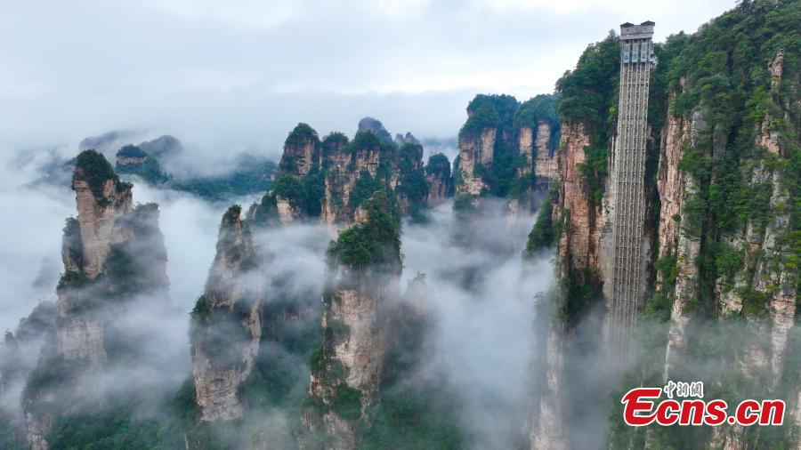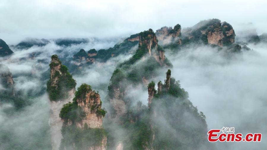 Spectacular view of cloud-shrouded Wulingyuan Scenic Area in Zhangjiajie