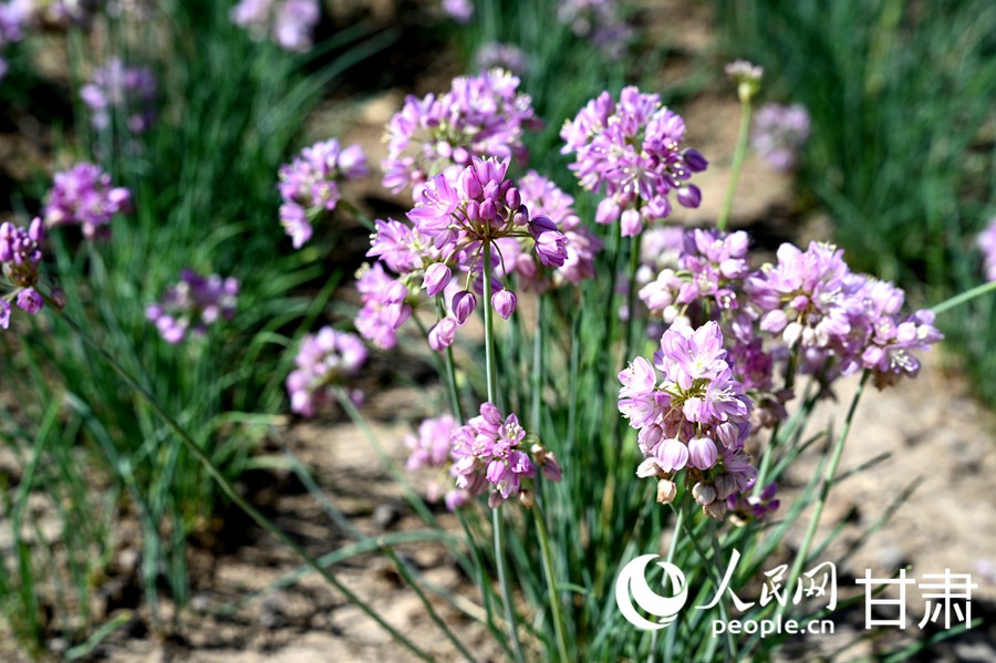 Photo shows flowers of wild onions in Minqin county, Wuwei city, northwest China's Gansu Province. (People's Daily Online/Xi Juanjuan)