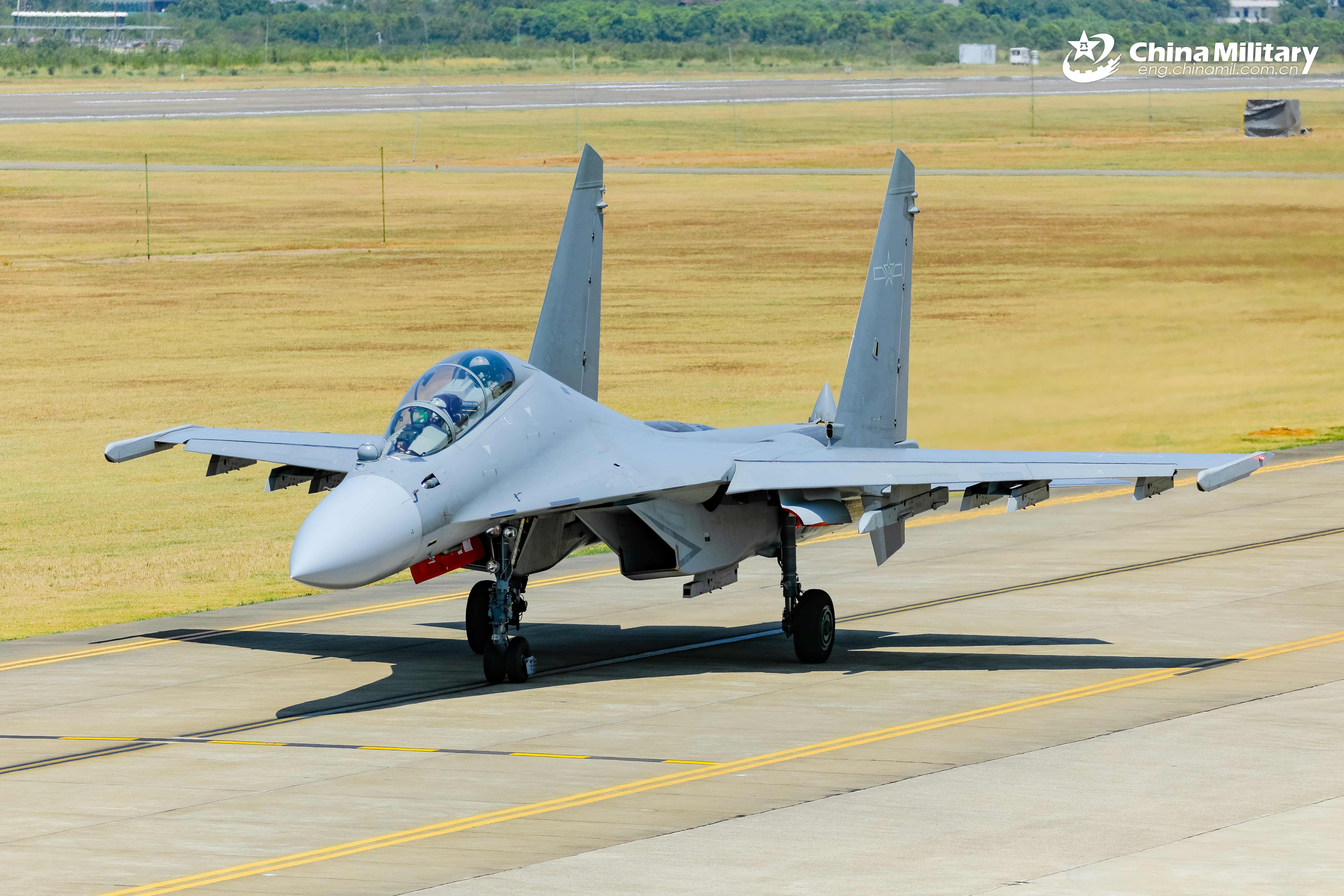 A J-16 fighter jet attached to an aviation brigade under the Chinese PLA Air Force taxis on the runway during a flight training exercise. (eng.chinamil.com.cn/Photo by Wang Yijie)
