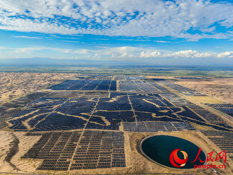 Photo shows a solar power base in the Kubuqi Desert, north China's Inner Mongolia Autonomous Region, where the solar panels are arranged in the shape of a horse. (People's Daily Online/Meng Jiashu)