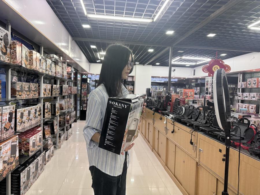 Saltanat, a cross-border live-streamer at Xinjiang's Horgos Yiwu International Business Trade Mall, said she often showcases household appliances like air fryers, vacuum cleaners and electric irons to consumers in Central Asia.