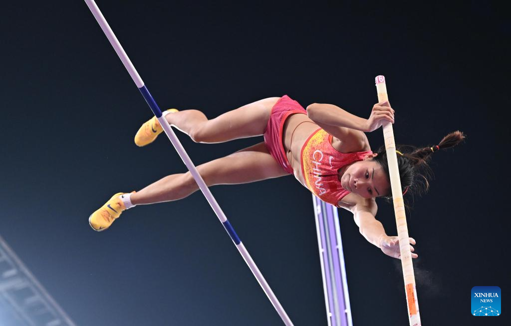 Niu Chunge of China competes during the women's pole vault final at the 2025 World Athletics Championships in Tokyo, Japan, Sept. 17, 2025. (Xinhua/Ju Huanzong)