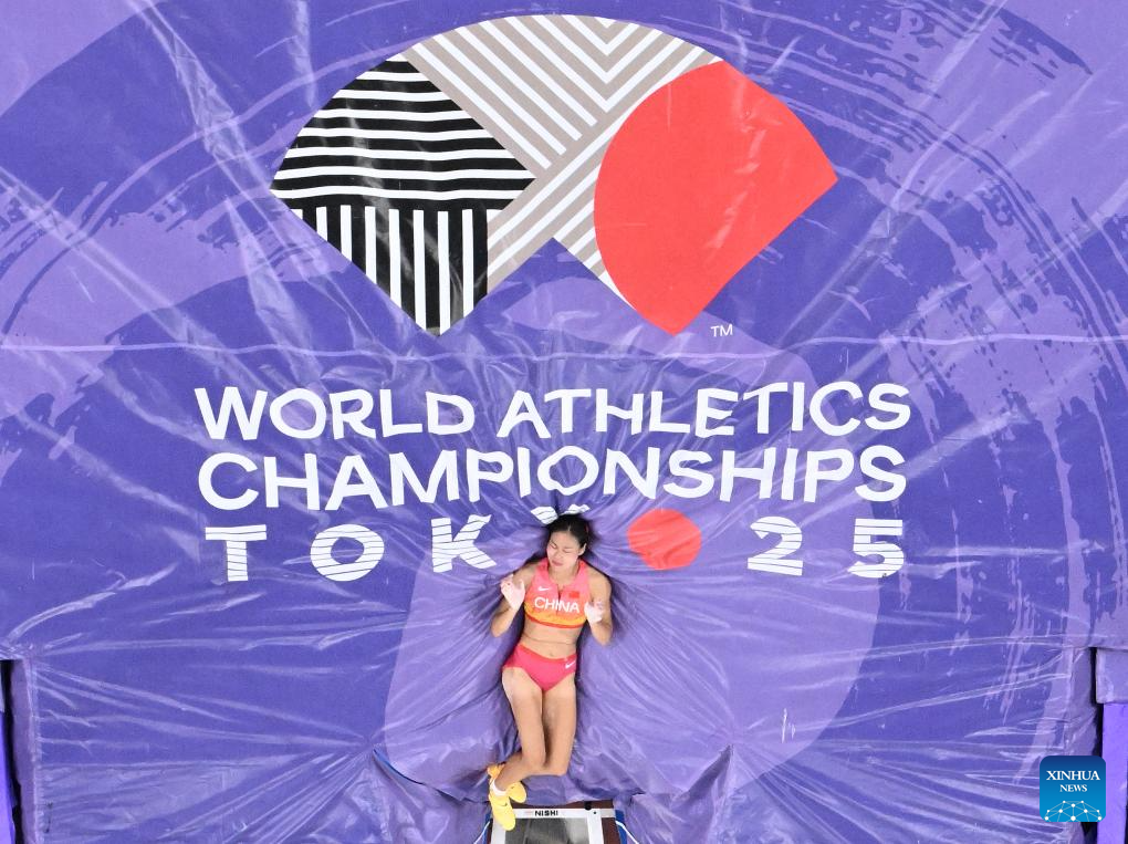 Niu Chunge of China competes during the women's pole vault final at the 2025 World Athletics Championships in Tokyo, Japan, Sept. 17, 2025. (Xinhua/Song Yanhua)