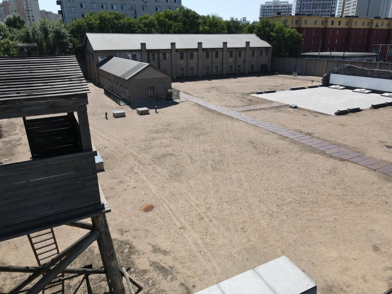 A restored watchtower and the remains of barracks at the former site of the Mukden Allied POW Camp in Dadong district, Shenyang, northeast China's Liaoning Province. (People's Daily Online/Qiu Yuzhe)