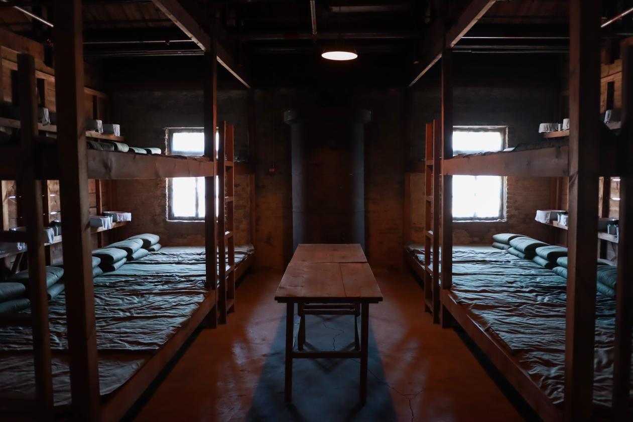Reconstructed bunks inside the barracks at the former site of the Mukden Allied POW Camp in Dadong district, Shenyang, northeast China's Liaoning Province. (People's Daily Online/Qiu Yuzhe)