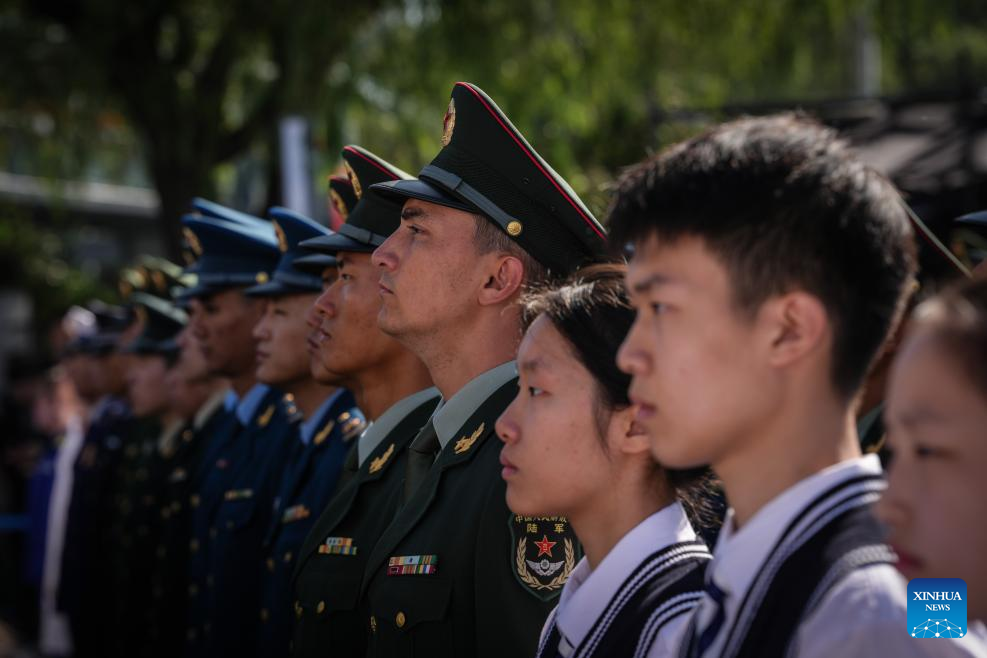 A ceremony to commemorate the September 18 Incident is held at the 9.18 Historical Museum in Shenyang, northeast China's Liaoning Province, Sept. 18, 2025. Sirens wailed and a bell tolled in northeast China on Thursday to commemorate the 94th anniversary of the September 18 Incident, which marked the start of China's war of resistance against Japanese aggression. Hundreds of people, including veterans and their relatives, gathered on the square of the 9.18 Historical Museum in Shenyang to honor those who fought in the Chinese People's War of Resistance against Japanese Aggression. (Xinhua/Pan Yulong)