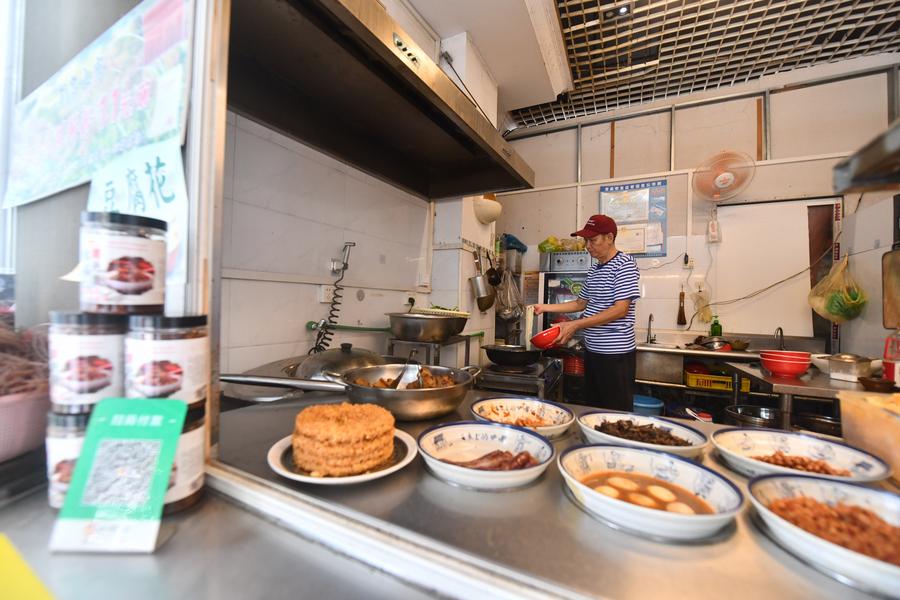A staff member adds toppings on a bowl of Luosifen at a restaurant in Nanning, south China's Guangxi Zhuang Autonomous Region, Sept. 18, 2025. (Xinhua/Lu Boan)
