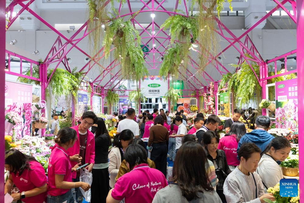 People visit the 23rd Kunming International Flower Expo of China in Kunming, capital of southwest China's Yunnan Province, Sept. 19, 2025. The flower expo kicked off on Friday in Kunming, attracting more than 500 enterprises from around the world.