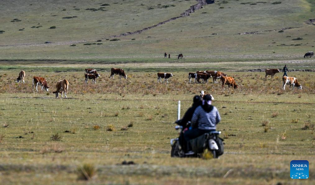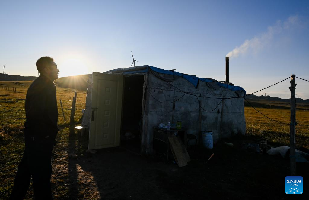 This photo taken on Sept. 19, 2025 shows the summer pasture where Duurengbulag's family has stayed in Baori Hushu Gacha of Gerquluu Sumu, Jarud Banner of Tongliao, north China's Inner Mongolia Autonomous Region. Every September, herders in Baori Hushu Gacha of Gerquluu Sumu in Jarud Banner drive their well-fed livestock from the summer pastures back to the winter pasture. (Xinhua/Lian Zhen)