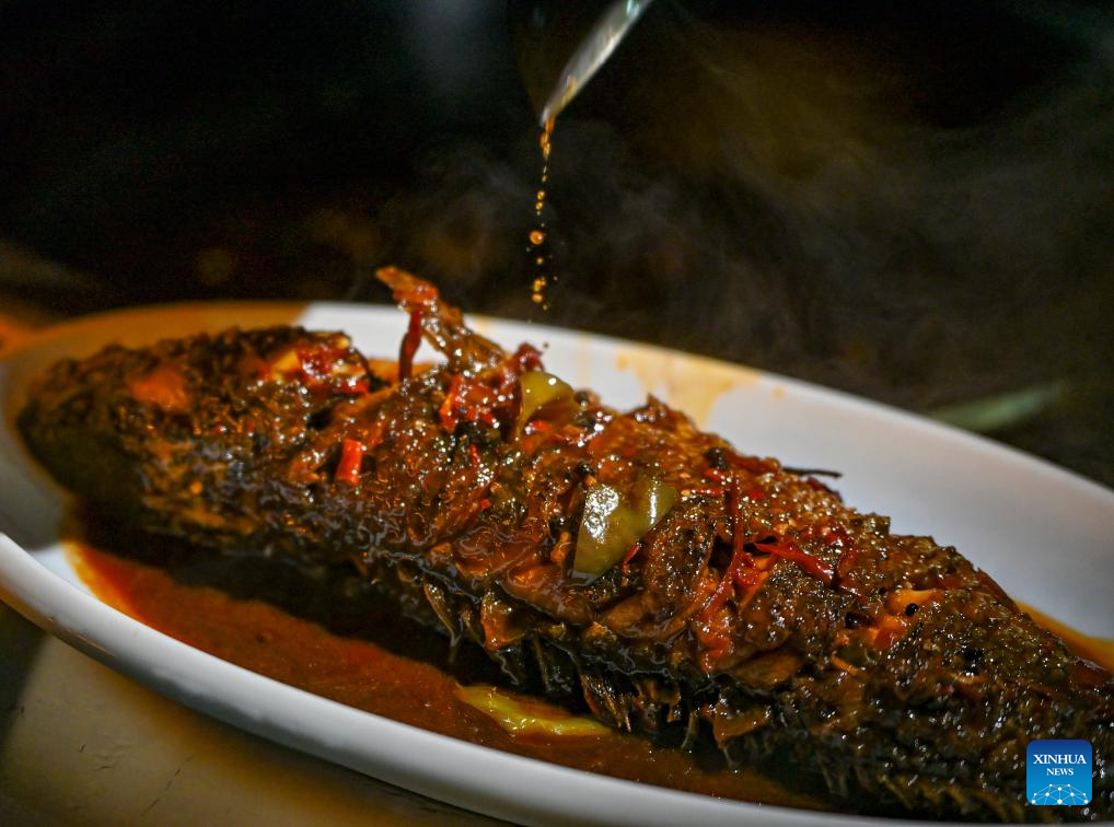 This photo taken on Sept. 17, 2025 shows a dish made by Ma Xiuhua in Tacheng City, northwest China's Xinjiang Uygur Autonomous Region.(Xinhua/Chen Shuo)