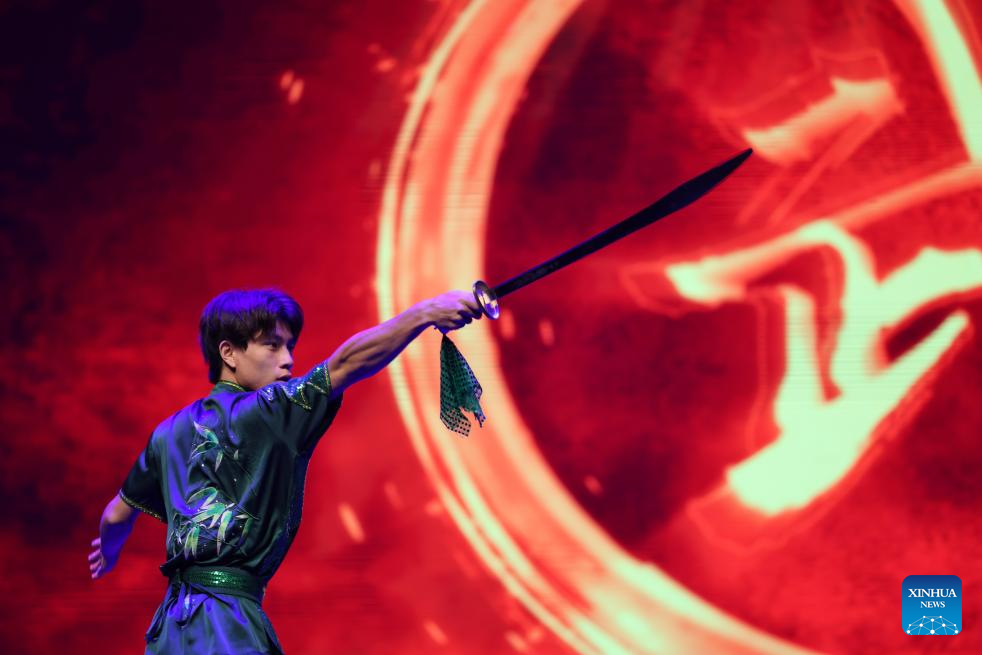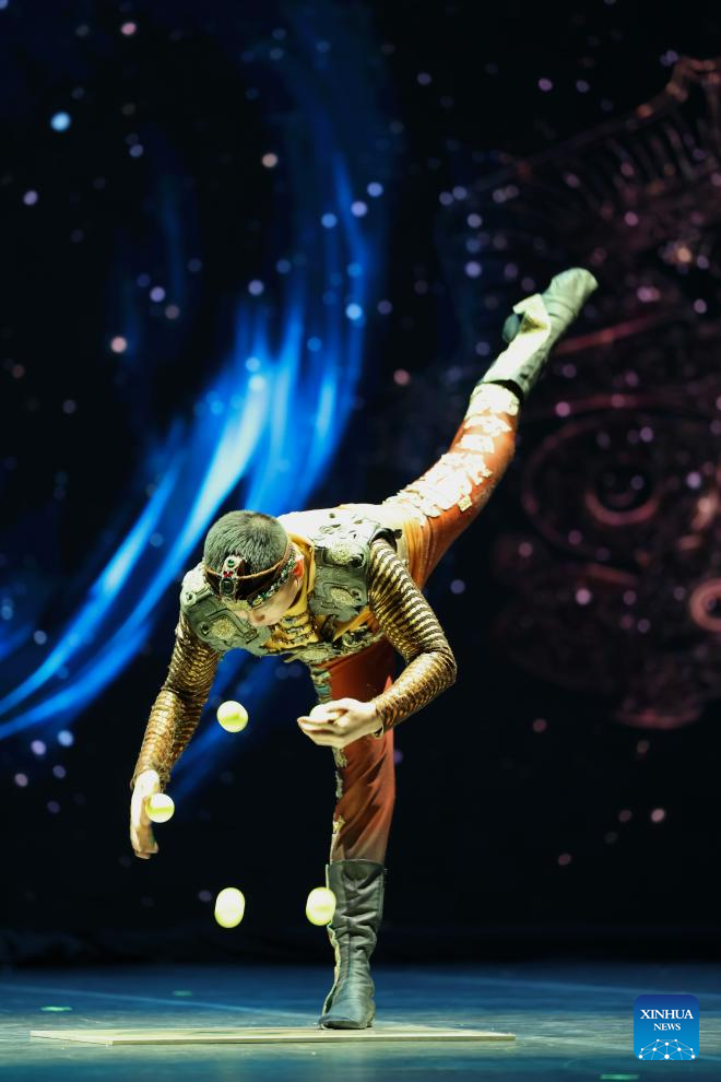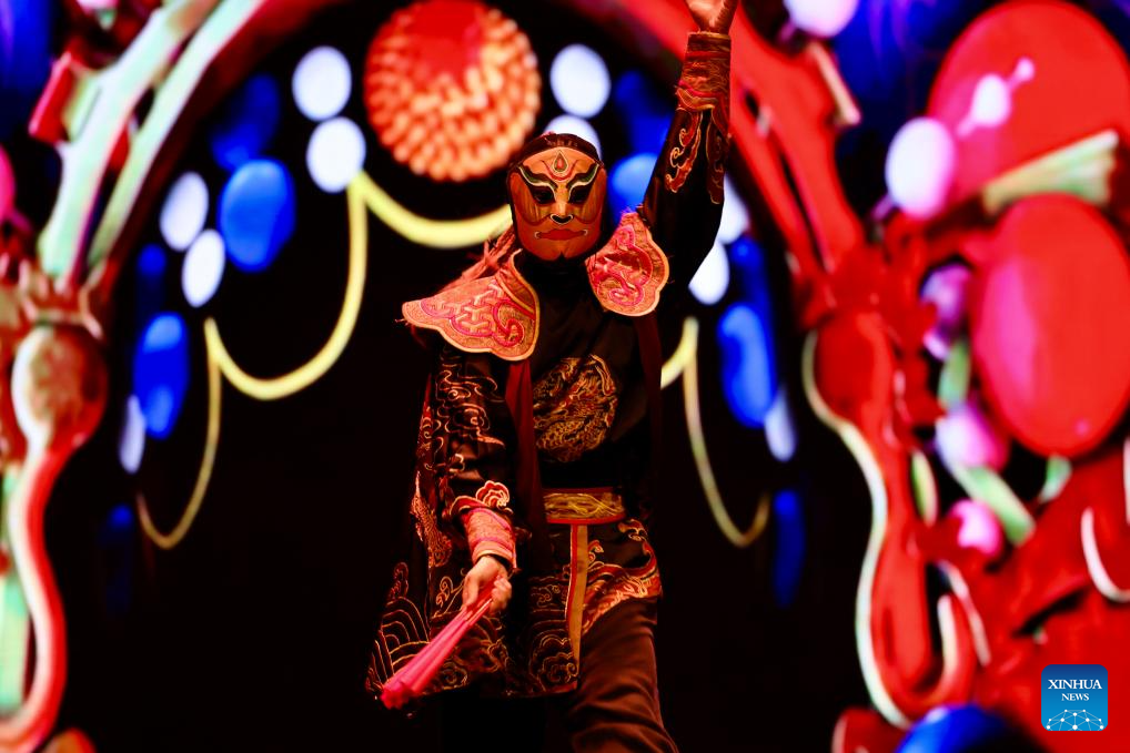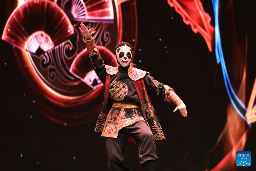 An artist from Chengdu art troupe performs during a show titled "Sharing the Beauty of the Moon" at the Bahrain National Theater in Manama, Bahrain, Sept. 20, 2025. (Xinhua/Wang Haizhou)