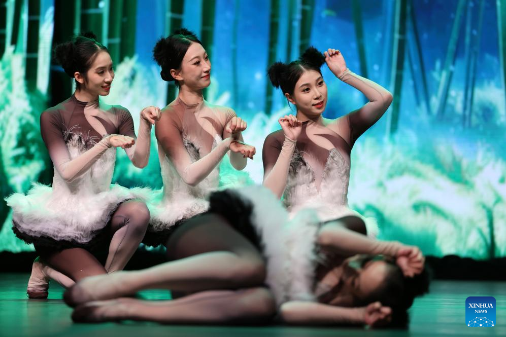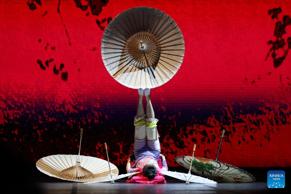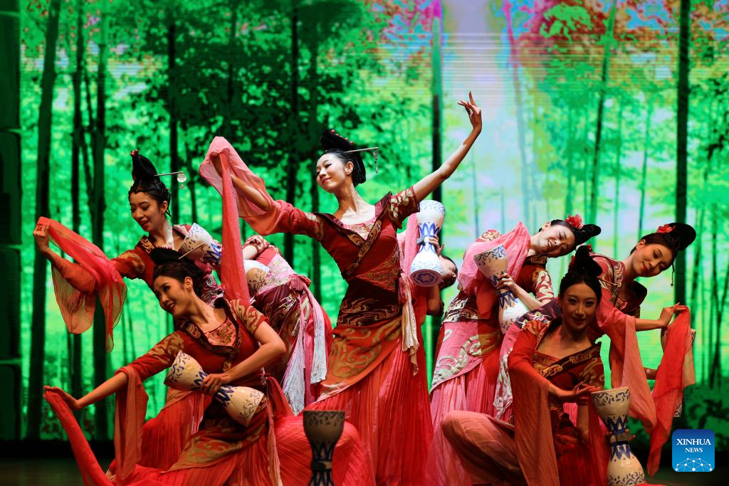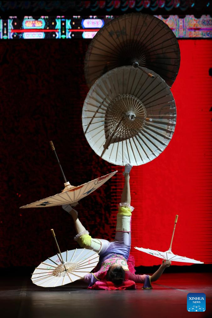Artists from Chengdu art troupe perform during a show titled "Sharing the Beauty of the Moon" at the Bahrain National Theater in Manama, Bahrain, Sept. 20, 2025. (Xinhua/Wang Haizhou)