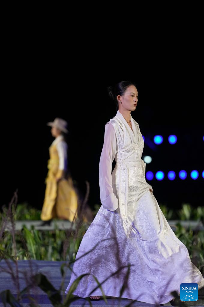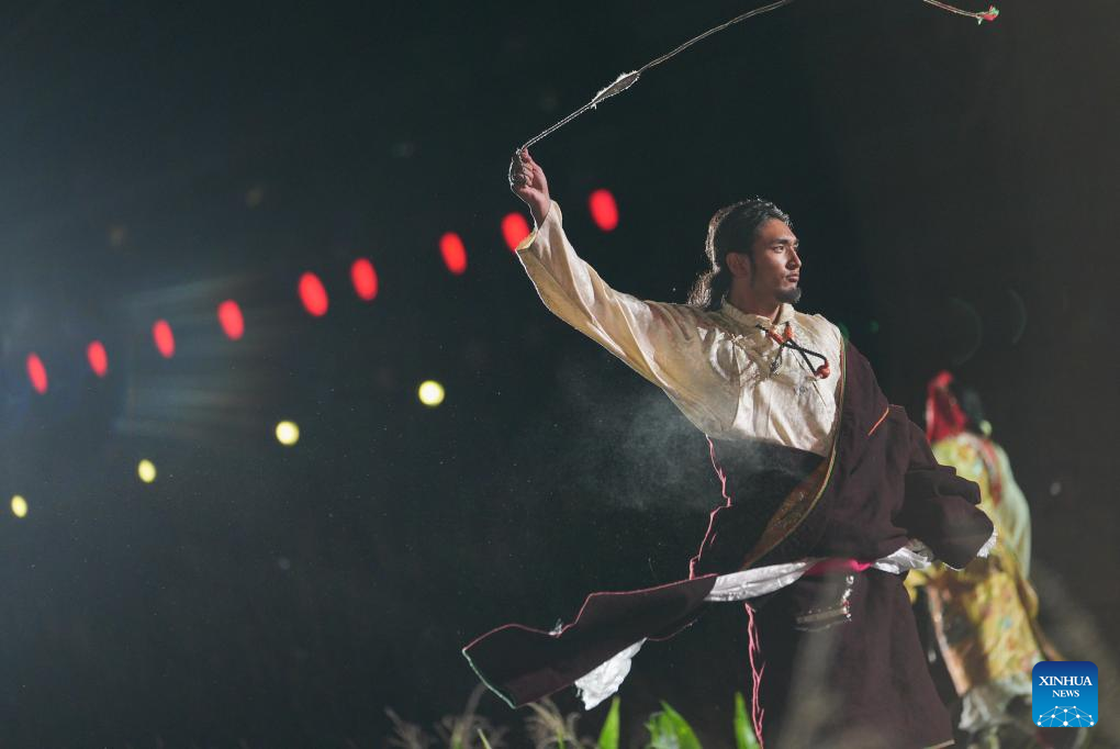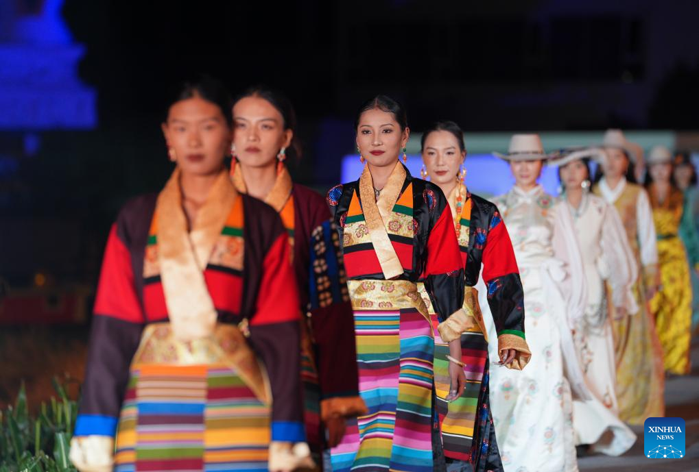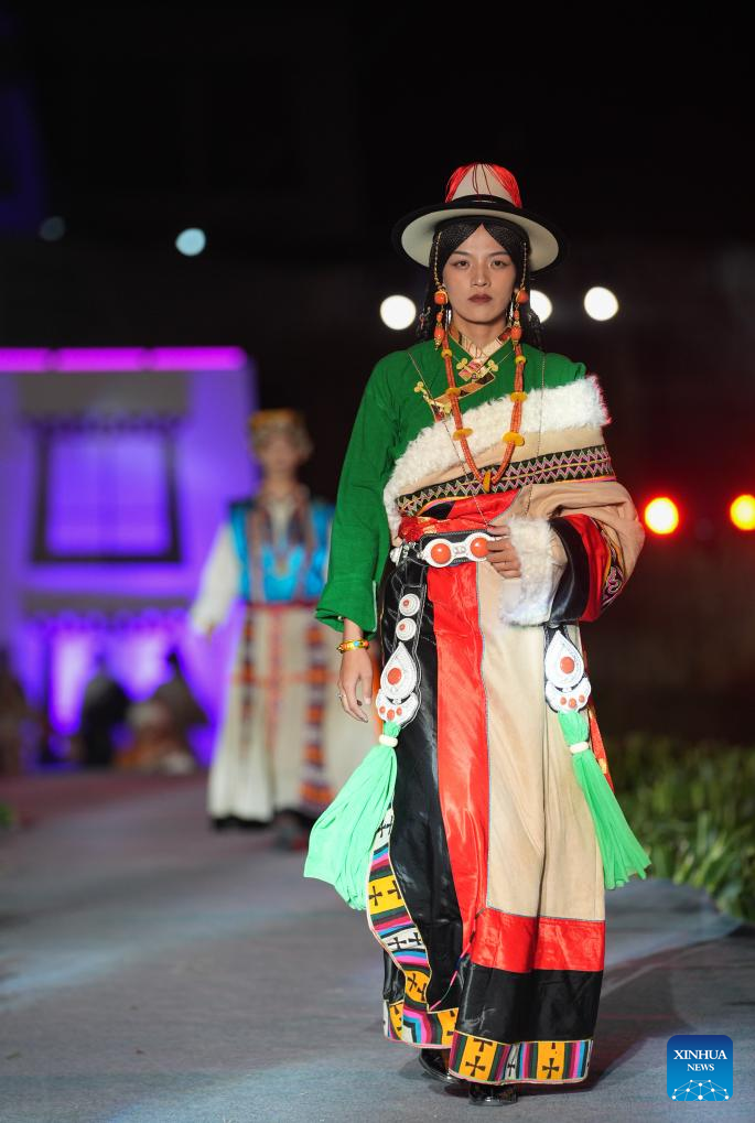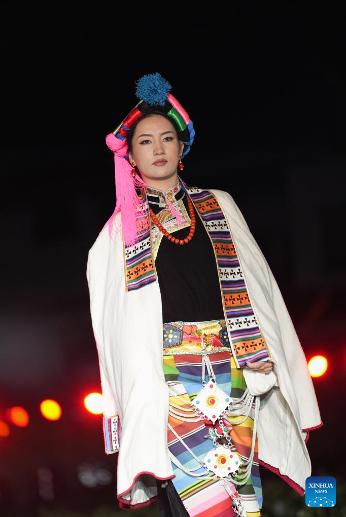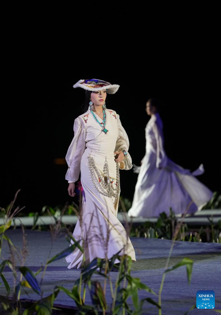 A Tibetan costume show is staged in Zhongde Village of Xiangcheng County, Ganzi Tibetan Autonomous Prefecture, southwest China's Sichuan Province, Sept. 20, 2025. A Tibetan costume show combining tradition and modernity was staged in the cornfield here on Saturday. (Xinhua/Jiang Hongjing)