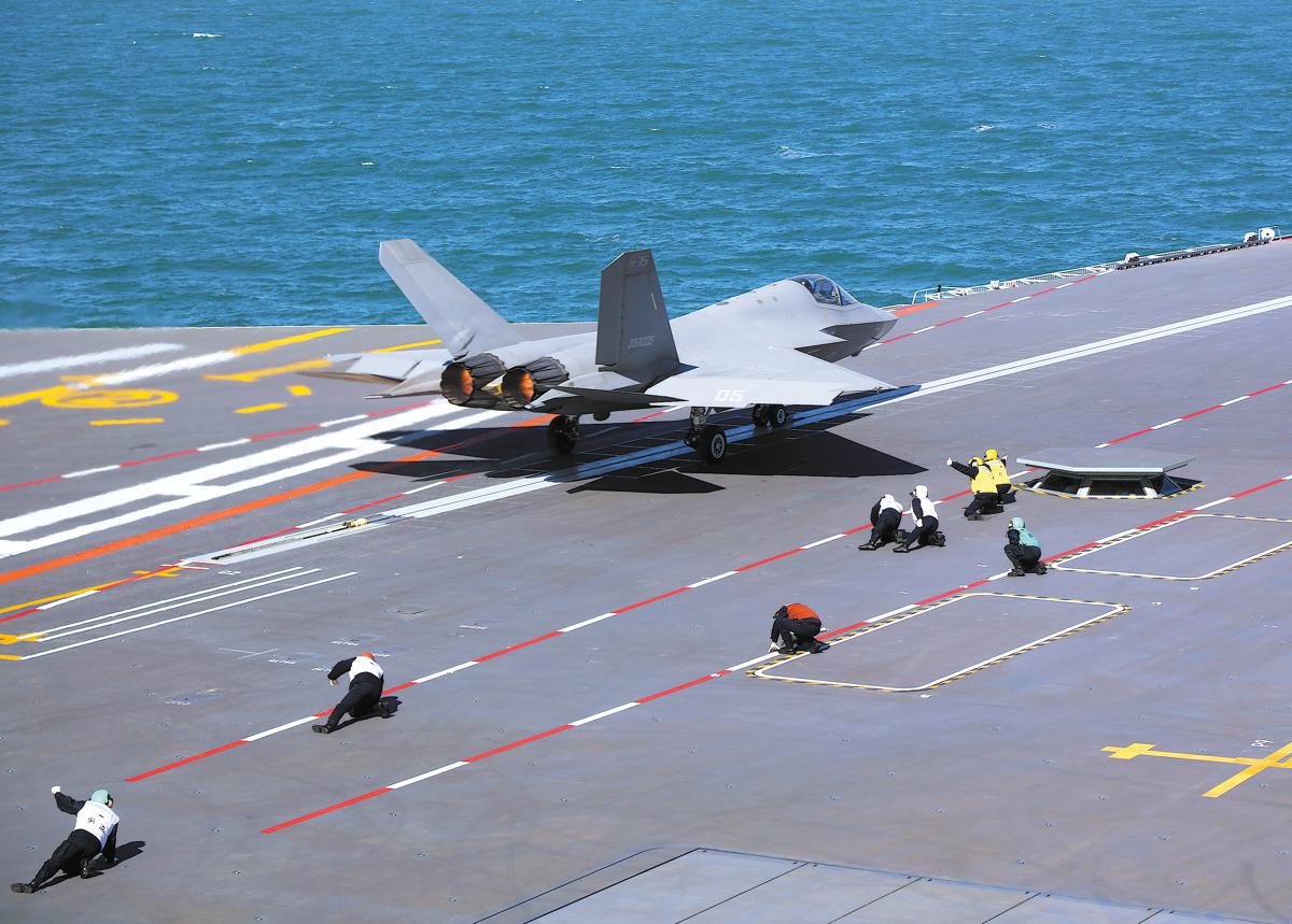 A J-35 fighter jet takes off from the flight deck of the aircraft carrier CNS Fujian. PHOTO BY LI TANG / FOR CHINA DAILY