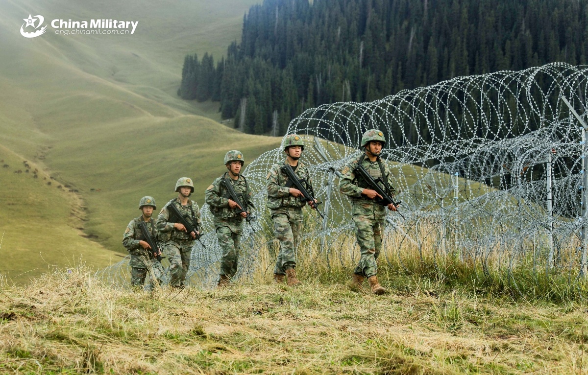 Soldiers assigned to a border defense company under the Chinese PLA Army patrol along the borderline during a routine patrol mission in recent days. (eng.chinamil.com.cn/Photo by Zheng Yaqi)