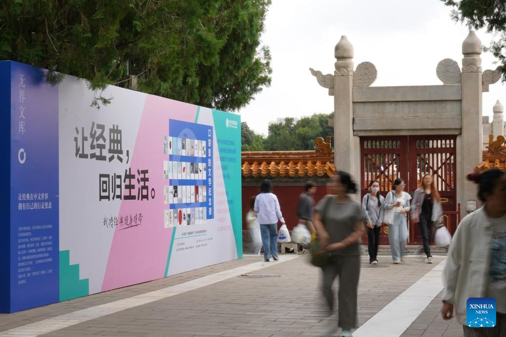 Visitors are seen during the Beijing Book Fair 2025 at the Ditan Park, also known as the Temple of Earth, in Beijing, capital of China, Sept. 22, 2025. Themed "Read to Become a Better You," the 11-day Beijing Book Fair 2025 concluded at the Temple of Earth on Monday. (Xinhua/Dai Mingxuan)