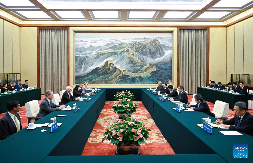 Chinese Vice Premier He Lifeng, also a member of the Political Bureau of the Communist Party of China Central Committee, meets with a U.S. congressional delegation led by Representative Adam Smith in Beijing, capital of China, Sept. 22, 2025. (Xinhua/Shen Hong)
