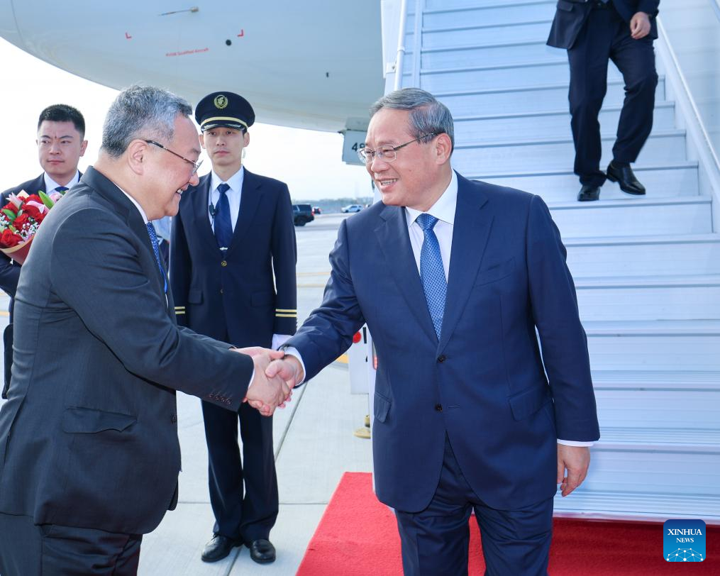 NEW YORK, Sept. 22 (Xinhua) -- Chinese Premier Li Qiang landed in New York on Monday afternoon to attend the general debate of the 80th session of the United Nations General Assembly.