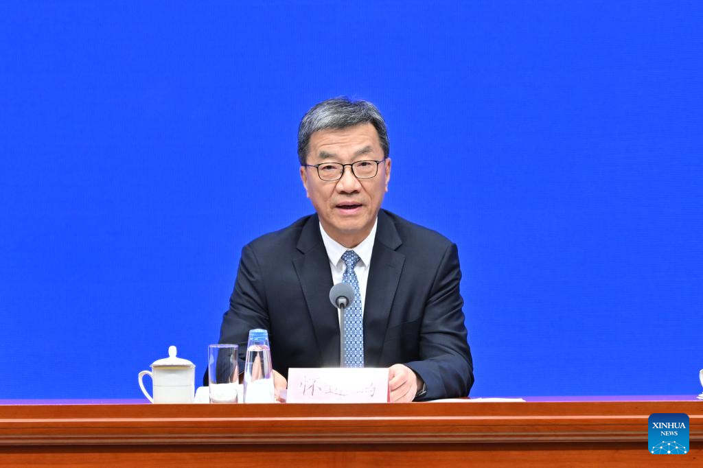 Chinese Minister of Education Huai Jinpeng attends a press conference held by the State Council Information Office (SCIO) on progress in accelerating the development of China into a leading country in education during the 14th Five-Year Plan period (2021-2025) in Beijing, capital of China, Sept. 23, 2025. (Xinhua/Li Xin)