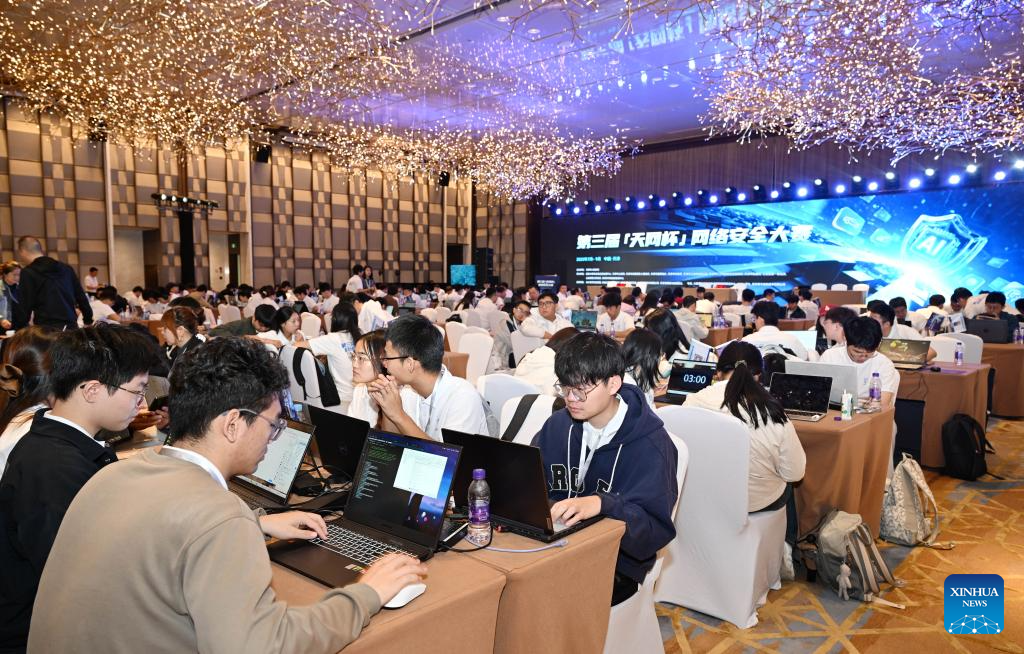Contestants compete at a cyber security competition held during the Third Cyber Security Summit (Tianjin) in north China's Tianjin, Sept. 23, 2025. Themed "Jointly Building Cyber Security and Governing Cyberspace," the Third Cyber Security Summit (Tianjin) kicked off here on Tuesday. (Xinhua/Zhao Zishuo)