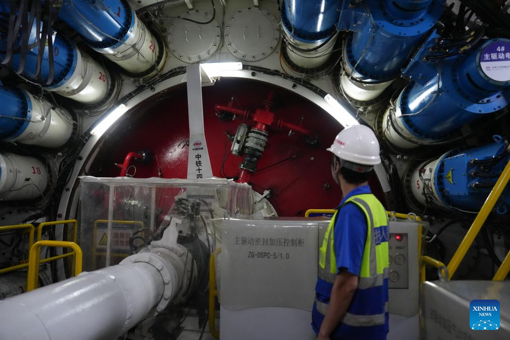 "Yongzhou" tunnel boring machine operates at the construction site of Jintang undersea tunnel in east China's Zhejiang Province, Sept. 22, 2025. The self-developed tunnel boring machine "Yongzhou" achieved a tunneling mileage exceeding 2,470 meters on Monday at a depth of 65 meters below sea level of Jintang waterway between cities of Ningbo and Zhoushan in east China's Zhejiang Province. The milestone marks the completion of over half of the tunneling work in Ningbo section of Jintang undersea tunnel. (Xinhua/Huang Zongzhi)