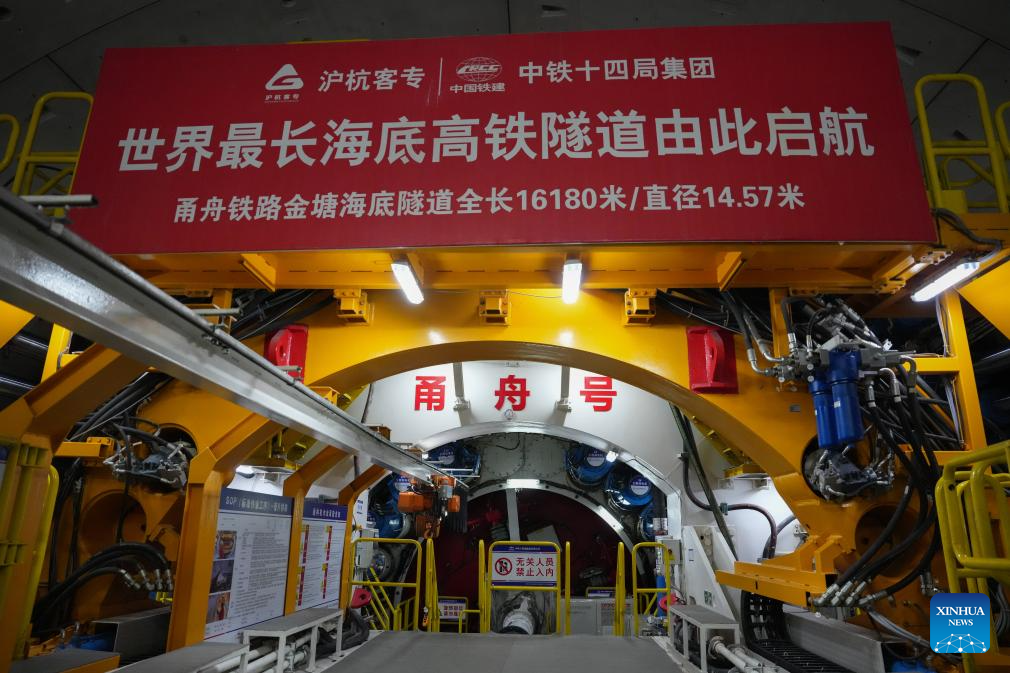 The tunnel, stretching 16.18 km, is an important facility for the Yongzhou (Ningbo-Zhoushan) high-speed railway and is set to be the world's longest undersea railway tunnel upon completion.