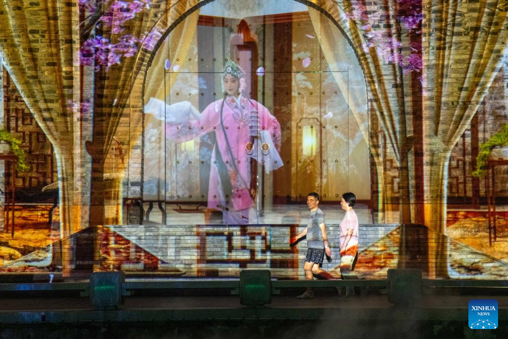 People visit the Qingming bridge historical and cultural community in Wuxi City, east China's Jiangsu Province, Sept. 23, 2025. The Qingming bridge historical and cultural community spreads across the ancient canal, and boasts rich heritages. It is attracting an increasing number of visitors as more modern technologies have been adopted for enhanced sensory experiences. (Xinhua/Hu Zhixuan)