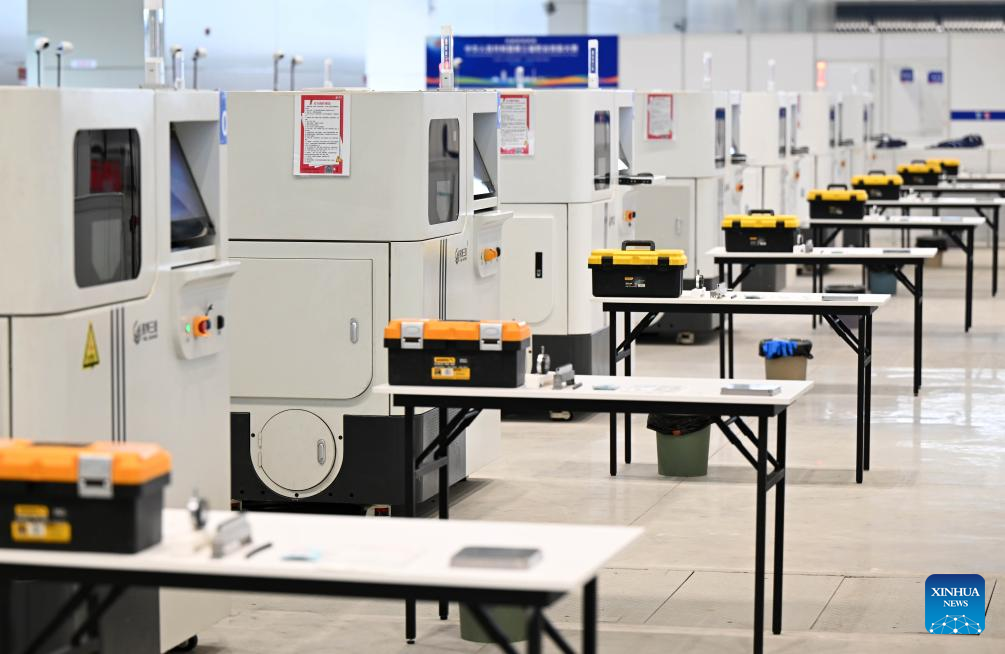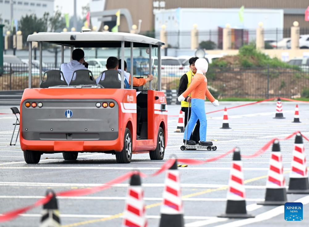 Contestants participate in an autonomous mobile robot event during the third Vocational Skills Competition in Zhengzhou, central China's Henan Province, Sept. 20, 2025. (Xinhua/Li Jianan)