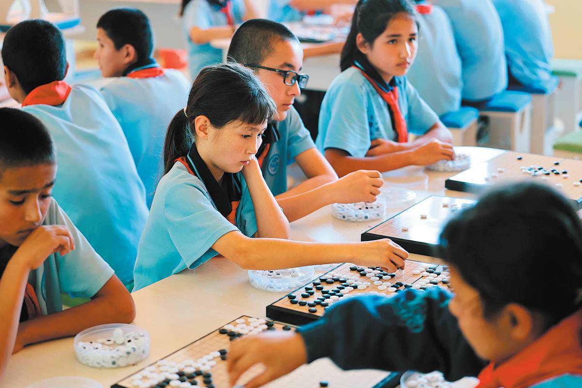 Students play Go at a school in Wushi county, Xinjiang, in September last year. REN QINQIN/XINHUA