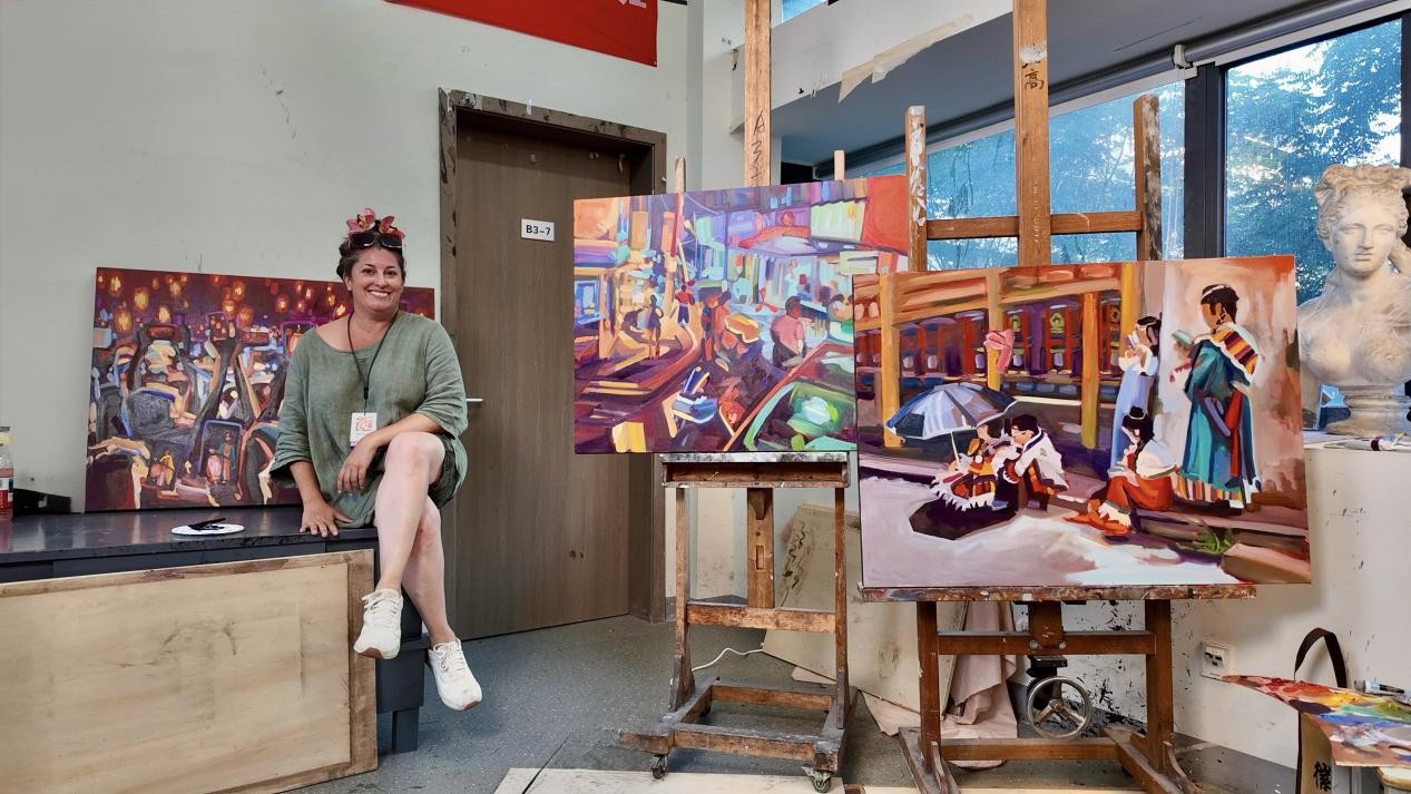 Canadian artist Michelle Reid works in a studio at the China Academy of Art. (People's Daily Online/Nika Yan)