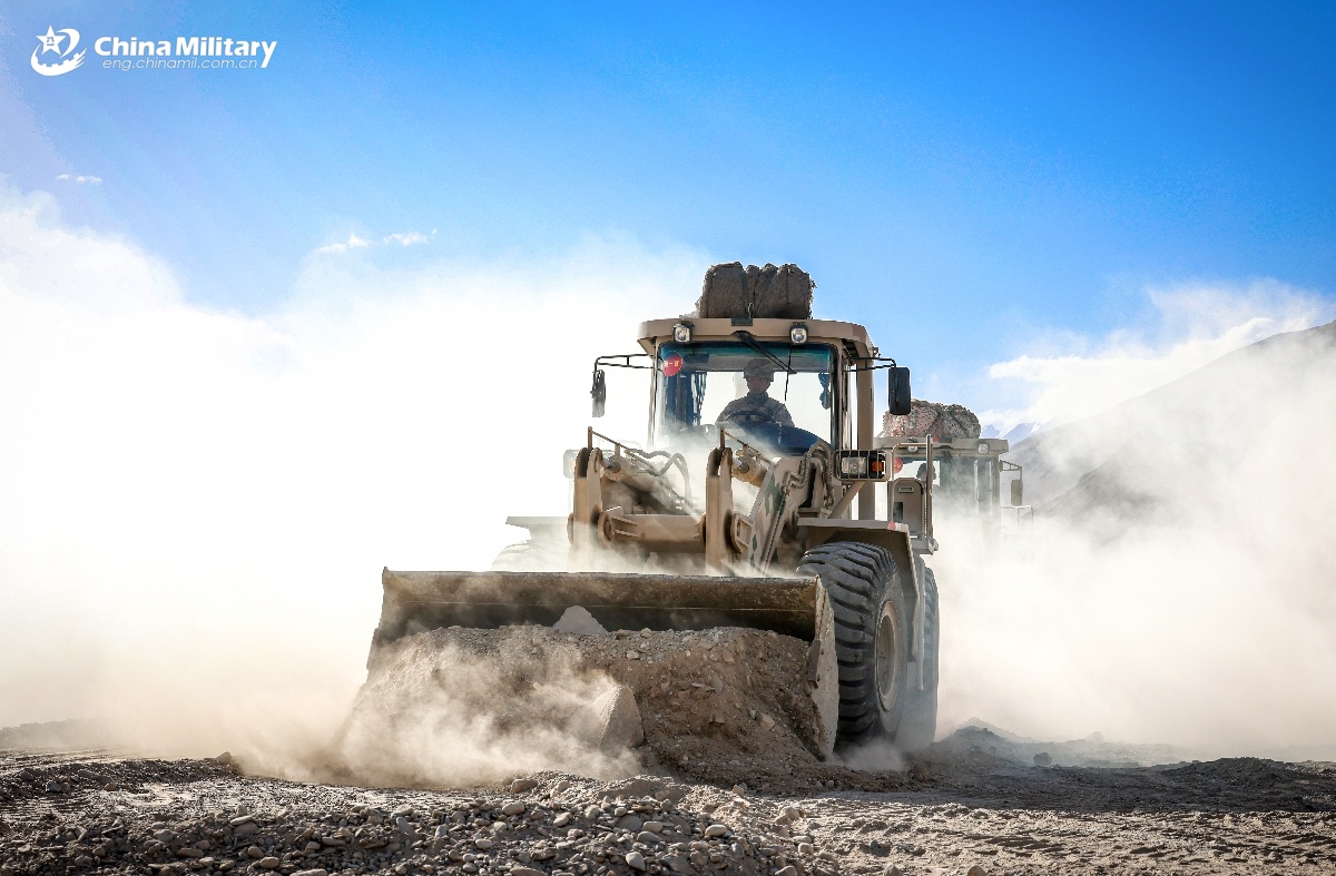 A soldier assigned to a regiment under the Chinese PLA Xinjiang Military Command operates a bulldozer to repair roads during a barrier-breaching training exercise on September 17, 2025. (eng.chinamil.com.cn/Photo by Wu Weiheng)