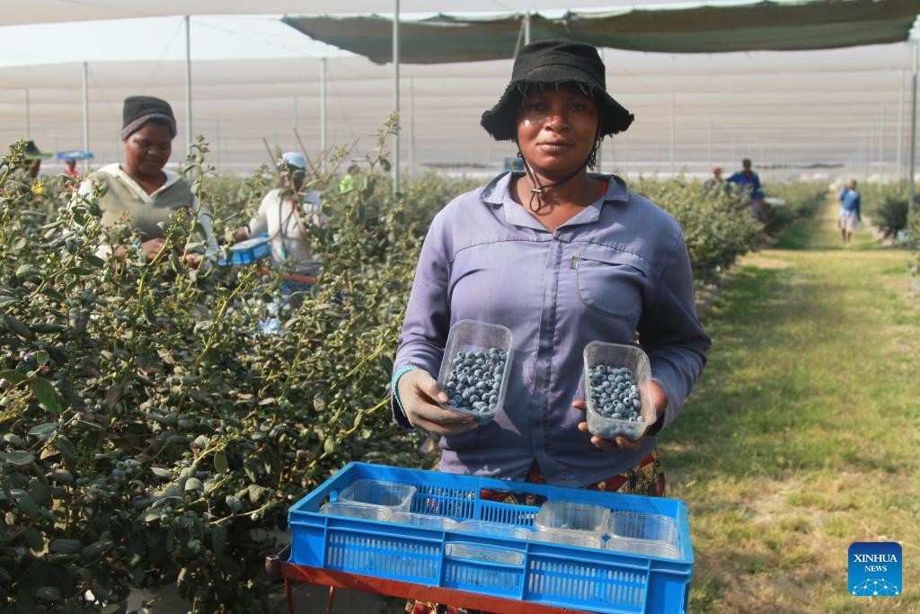A farmer harvests blueberries in Mashonaland West Province, Zimbabwe, Sept. 18, 2025. (Photo by Tafara Mugwara/Xinhua)
