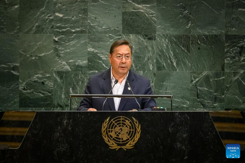 Bolivian President Luis Arce delivers a speech during the General Debate of the 80th session of the United Nations General Assembly (UNGA) at the UN headquarters in New York, Sept. 25, 2025. (Loey Felipe/UN Photo/Handout via Xinhua)