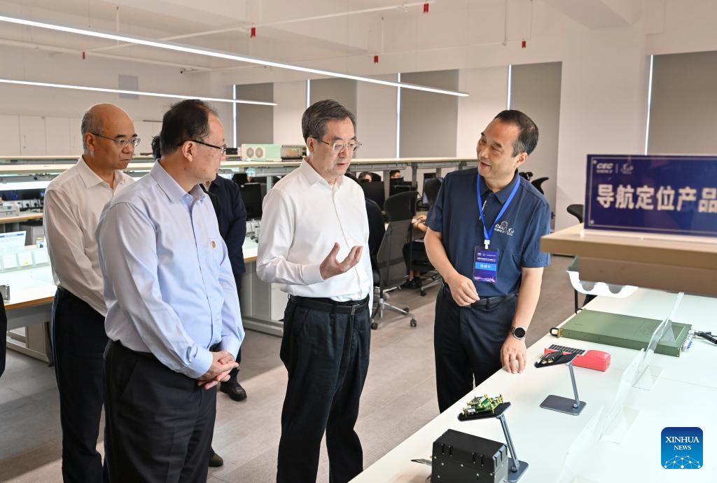 Chinese Vice Premier Ding Xuexiang, also a member of the Standing Committee of the Political Bureau of the Communist Party of China Central Committee, inspects the development and large-scale application of the BeiDou Navigation Satellite System in central China's Hunan Province, Sept. 23, 2025. Ding made an inspection tour in central China's Hunan Province on Tuesday. (Xinhua/Yin Bogu)