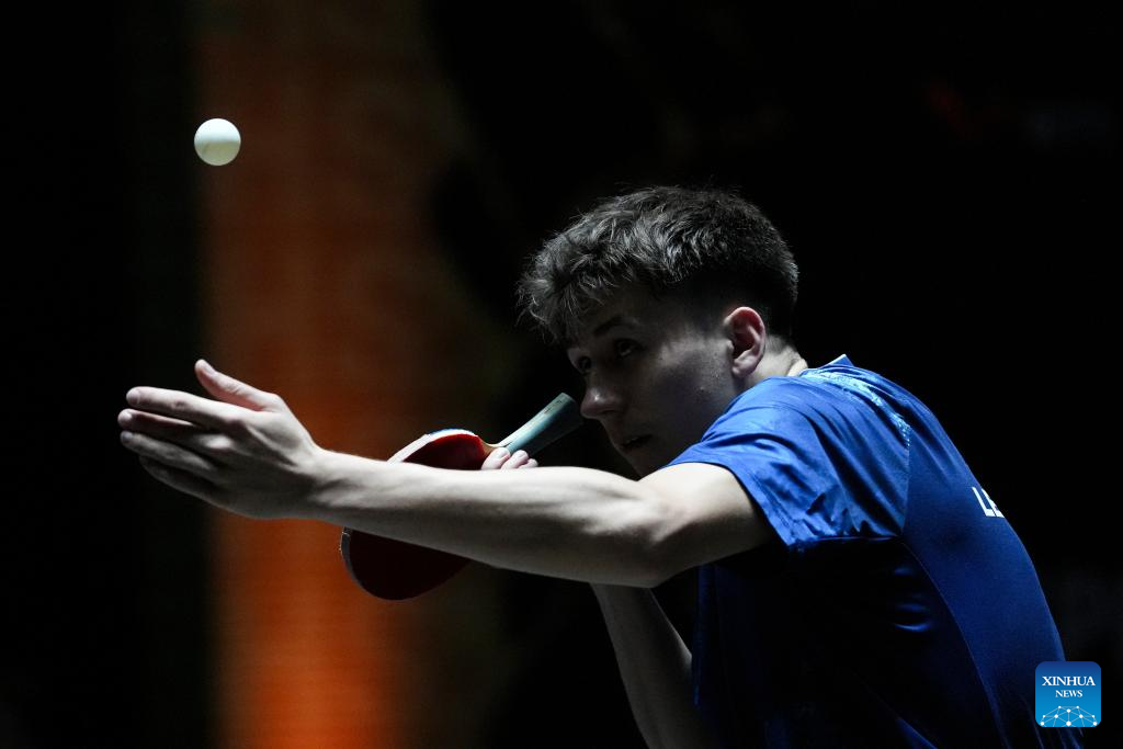 John Oyebode hits a return during the men's singles qualifying round 1 match between Andreas Levenko of Austria and John Oyebode of Italy at 2025 World Table Tennis (WTT) China Smash in Beijing, China, Sept. 25, 2025. (Xinhua/Sun Fei)