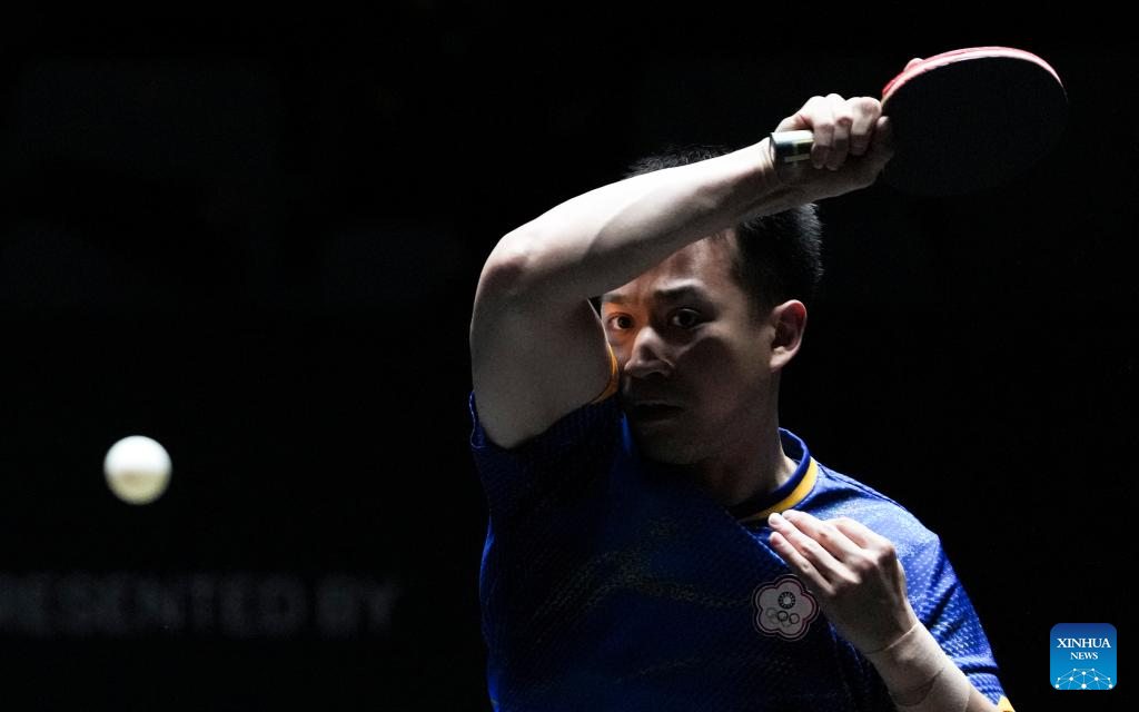 Liao Cheng-Ting hits a return during the men's singles qualifying round 1 match between Tom Jarvis of England and Liao Cheng-Ting of Chinese Taipei at 2025 World Table Tennis (WTT) China Smash in Beijing, China, Sept. 25, 2025. (Xinhua/Sun Fei)