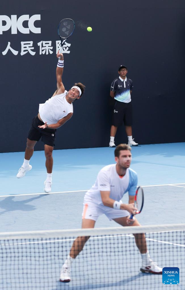 Bu Yunchaokete (R)/Cameron Norrie compete during the men's doubles first round match between Bu Yunchaokete (China)/Cameron Norrie (Britain) and Marcelo Melo (Brazil)/Alexander Zverev (Germany) at 2025 China Open tennis tournament in Beijing, China, Sept. 25, 2025. (Photo by Ma Zihan/Xinhua)