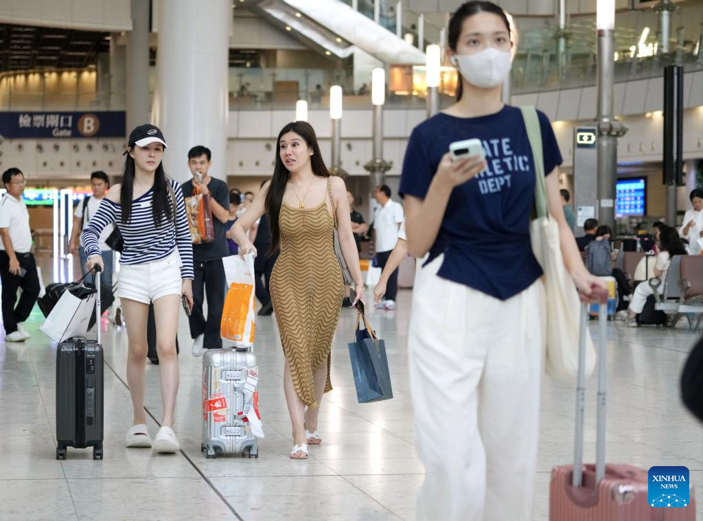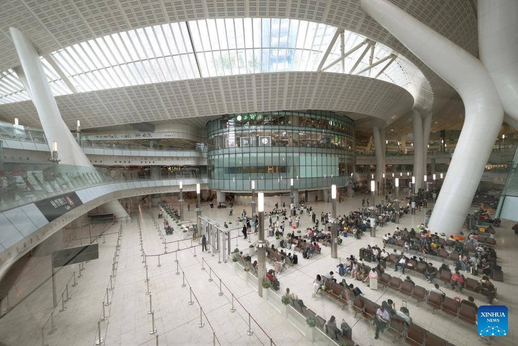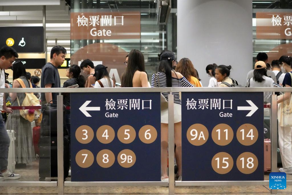 Passengers are pictured at Hong Kong West Kowloon Station in south China's Hong Kong, Sept. 25, 2025. The high-speed railway service between Hong Kong West Kowloon Station and stations in the Chinese mainland gradually resumed on Thursday as typhoon Ragasa edged away. (Xinhua/Xing Guangli)