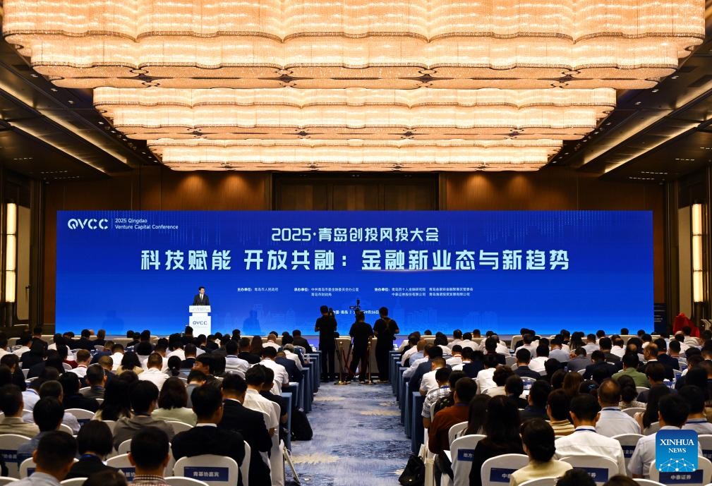 This photo taken on Sept. 26, 2025 shows a scene during the 2025 Qingdao Venture Capital Conference at Qingdao International Conference Center in Qingdao, east China's Shandong Province. (Xinhua/Li Ziheng)
